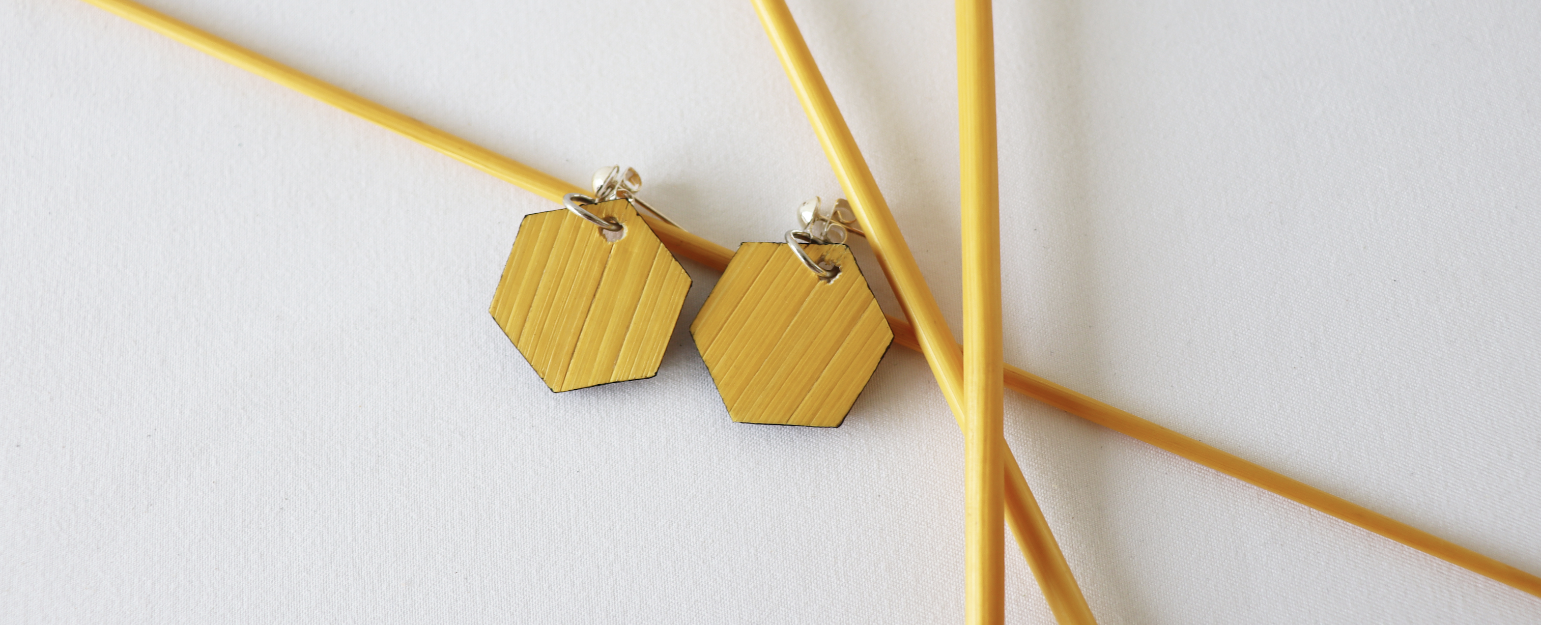 Boucles d’oreilles de formes hexagonales pour oreilles percées.